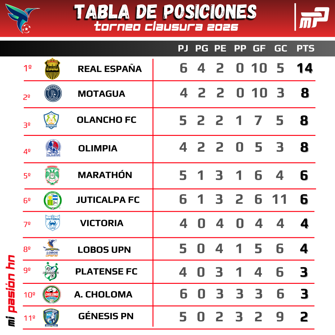La Máquina llegó a 14 puntos y será líder solitario por una semana másReal España venció a Choloma y es líder solitario del torneo...