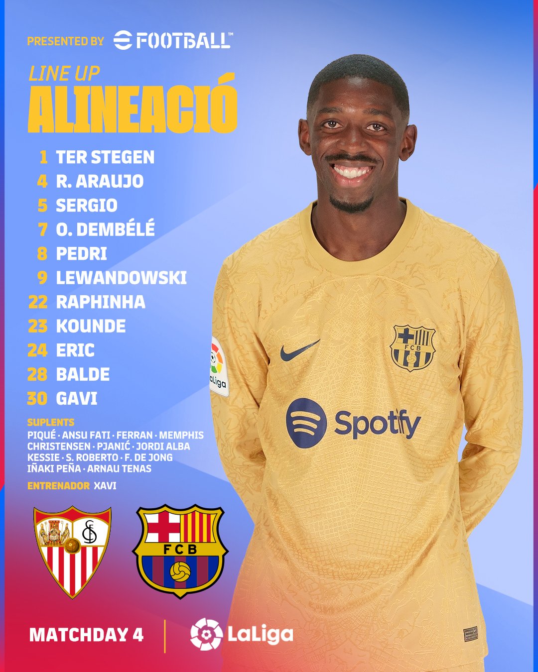 El Sevilla salió muy fuerte y pudo adelantarse, pero un gran arranque desde atrás del francés Dembelé desembocó en el 1-0 de Raphinha en el minuto 21, lo que cambió el signo de un partido que se inclinó aún más para un Barcelona dominante con un gran gol de Lewandowski en el 36, tras bajar el balón con el pecho y definir como un auténtico crack. Tras el descanso, ampliaron su renta por medio de Eric García en el 50 y ahí se acabó todo.