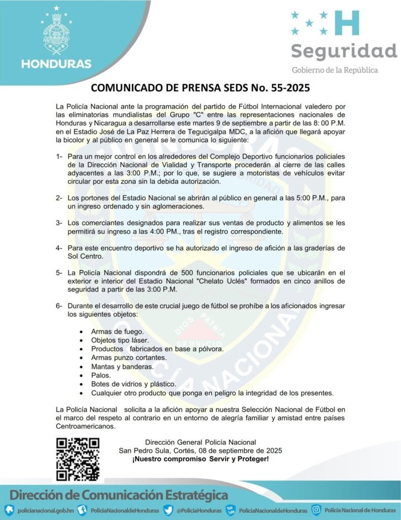 Para el desarrollo del partido entre Honduras y Nicaragua por la eliminatoria mundialista 2026, las autoridades cerrarán calles en los alrededores del Estadio Nacional, este martes.