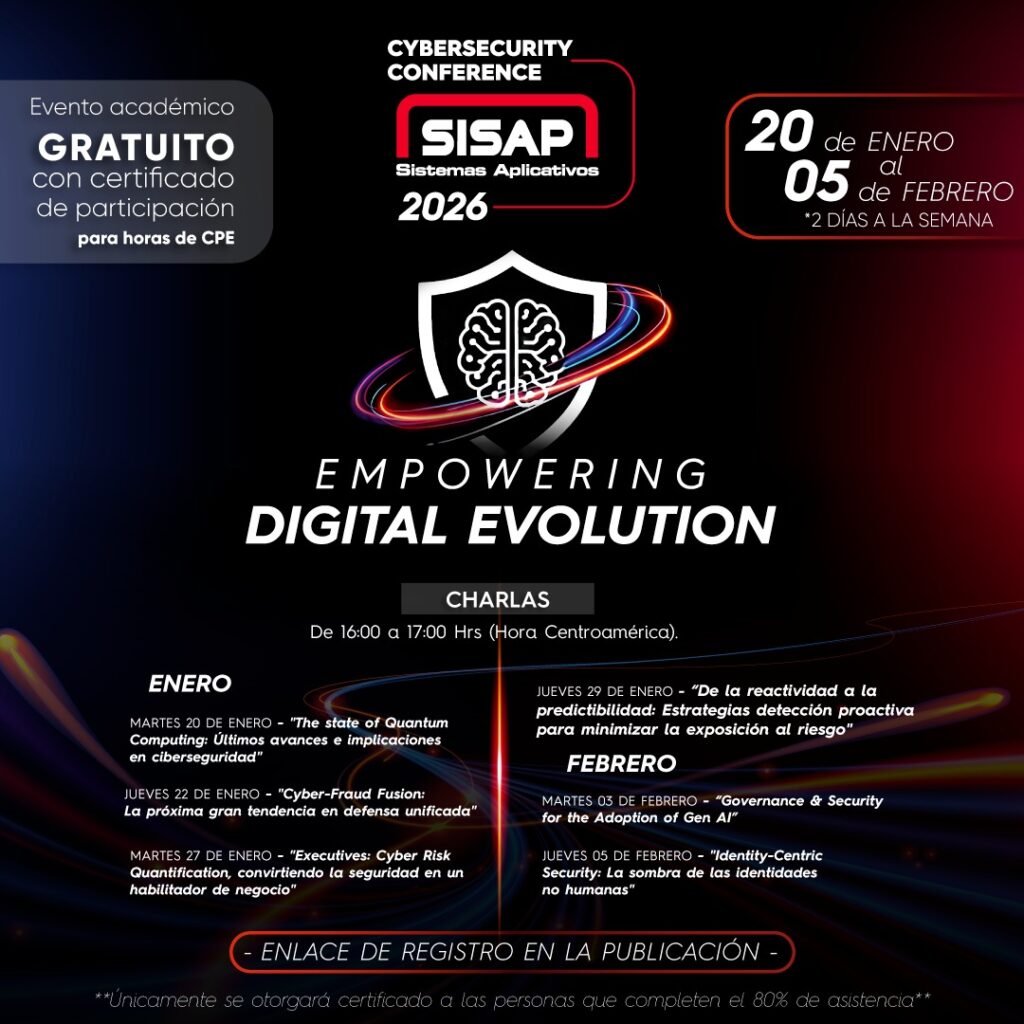 En un entorno digital en constante transformación, donde las amenazas cibernéticas evolucionan con mayor rapidez y sofisticación, se celebrará el Cybersecurity Conference 2026, el evento académico anual presentado por Sistemas Aplicativos (SISAP), que busca conectar a líderes, profesionales y entusiastas de la ciberseguridad de la región.