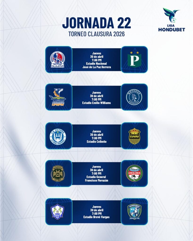 Las autoridades de Liga Nacional, hicieron oficiales los horarios de la Jornada 22 del Torneo Clausura.