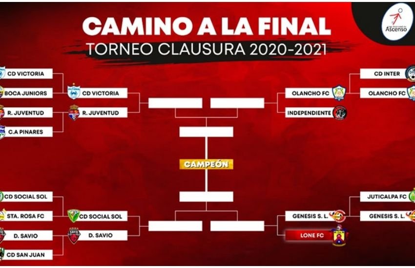 Mientras en el otro lado, el Olancho FC jugará ante Independiente en los cuartos de final y el Génesis SL se medirá al Lone FC.