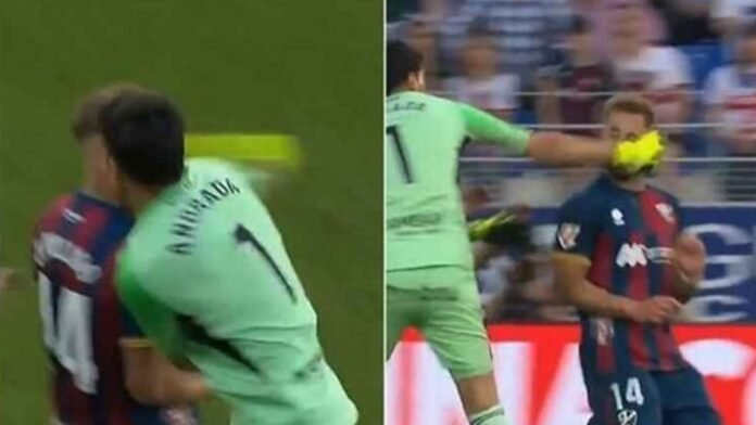 Esteban Andrada, arquero de Zaragoza, golpeó en la cara al capitán de Huesca, Jorge Pulido, después de ser expulsado en el tiempo añadido del partido entre ambos equipos en la jornada 37 de Segunda División española.