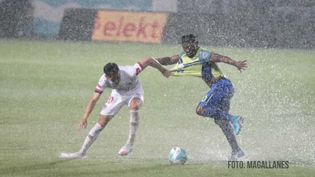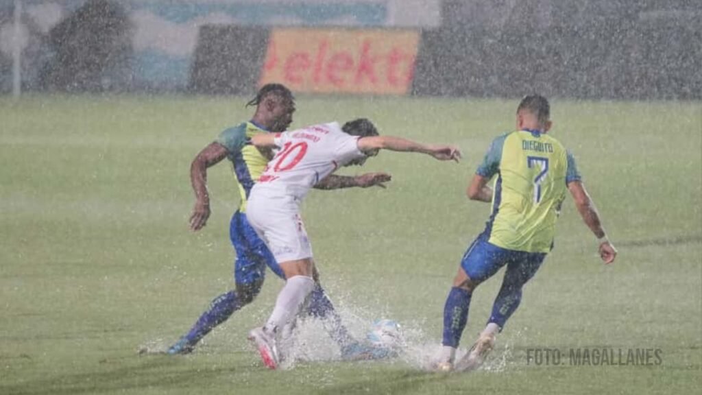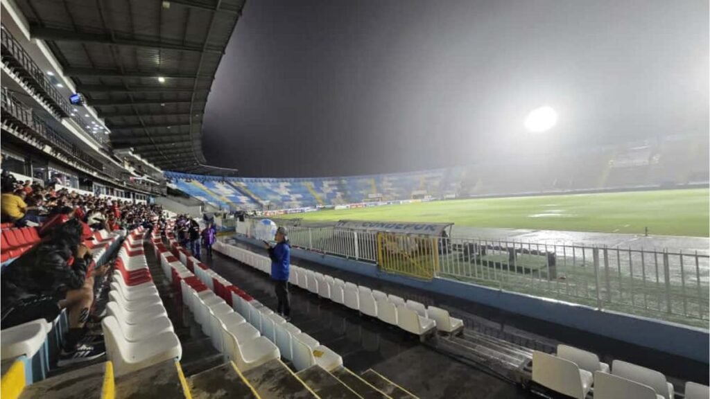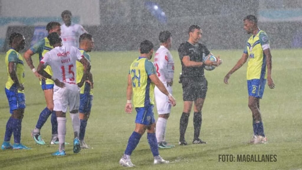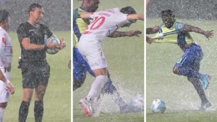 Los jugadores retornaron al terreno de juego en el segundo tiempo, pero solo jugaron seis minutos por la fuerte lluvia.