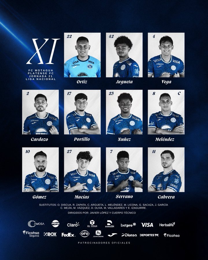 Motagua confirma su alineación para enfrentar al Platense en Tegucigalpa.