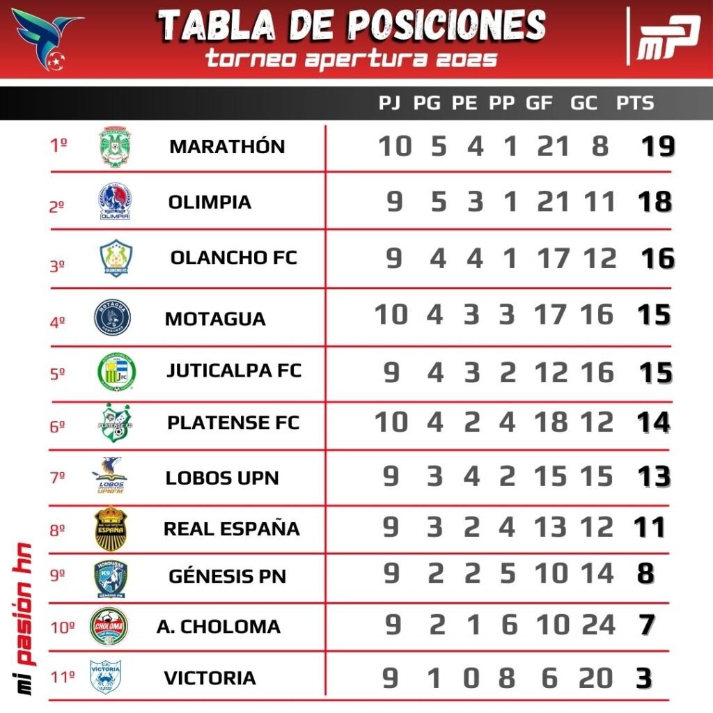 Se jugó la primera parte de la jornada 11. Motagua empata con Juticalpa, suma un punto y se mantienen los lugares; Tabla de posiciones del Apertura.