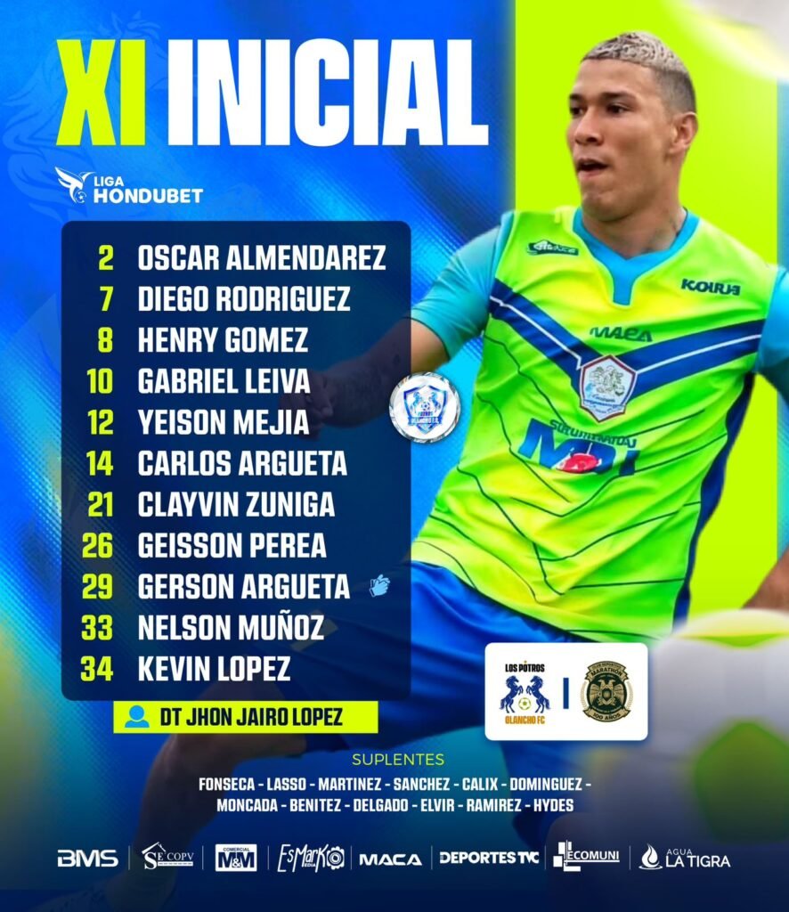Olancho FC: Gerson Argueta; Nelson Muñoz, Óscar Almendarez, Diego Rodríguez; Henry Gómez, Gabriel Leiva, Carlos Argueta, Yeison Mejía, Kevin López, Geisson Perea y Clayvin Zúniga.