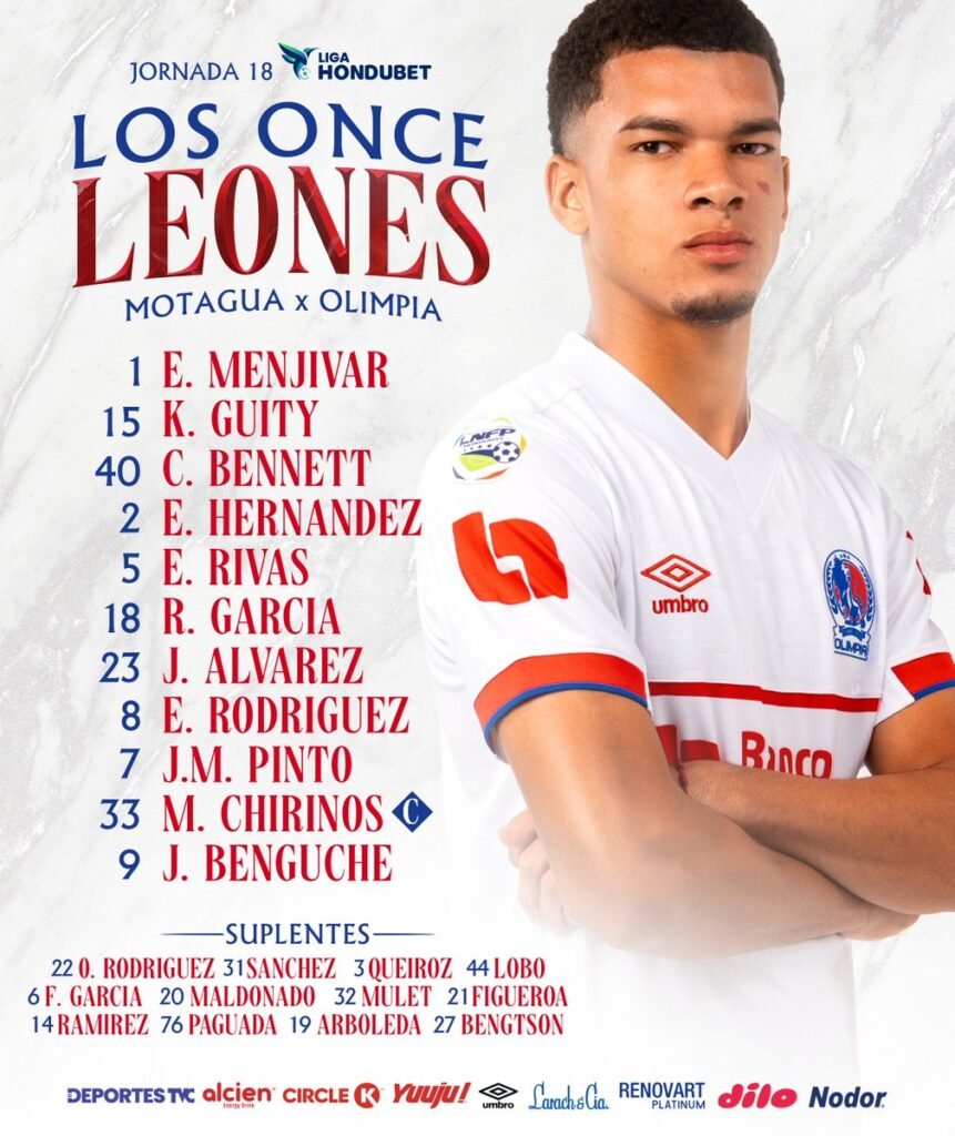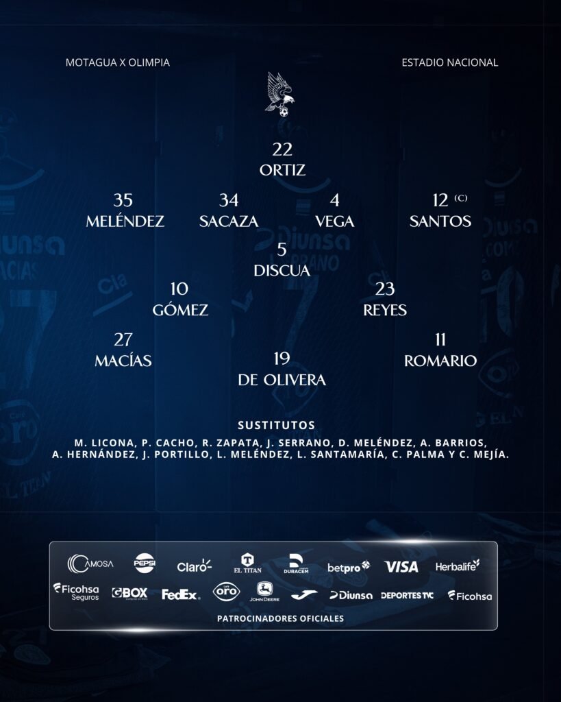 Olimpia anuncia su 11 titular para jugar en el Superclásico frente al Motagua. El partido arranca a las 6:00 pm.