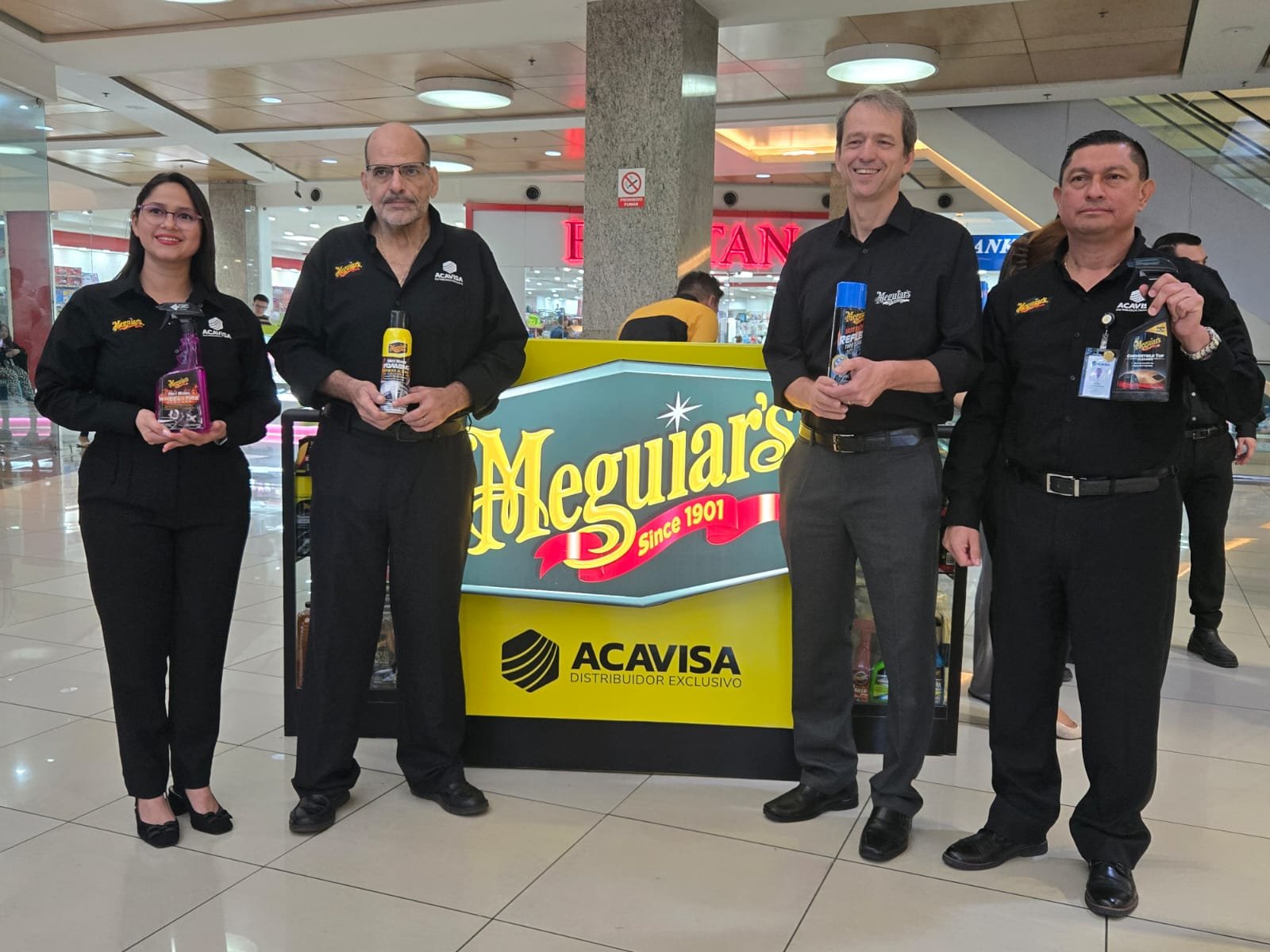 Ivania Castro, jefe de mercadeo regional en ACAVISA, comentó: “Estamos emocionados de inaugurar nuestro primer kiosco y acercarnos más a nuestros clientes aquí en City Mall con nuestro amplio portafolio de MEGUIAR’S, llevándoles lo mejor en cuidado para sus automóviles”.