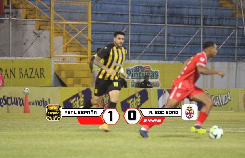 Real España esta venciendo 1-0 a la Real Sociedad en partido reprogramado del torneo Clausura de la Liga Nacional.