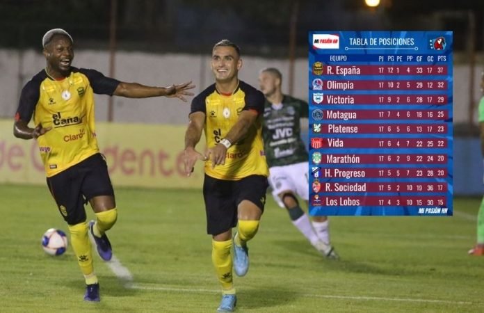 DestacadaLiga Nacional HondurasPasa en HondurasReal España gana las vueltas regulares del Clausura; Acá la tabla de posicionesPor Gerardo Bustillo - abril 27, 202201254FacebookTwitterPinterestWhatsApp Real España venció 3-1 al Marathón el partido reprogramado y se quedó con las vueltas regulares del torneo Clausura.Acá la tabla de posiciones: