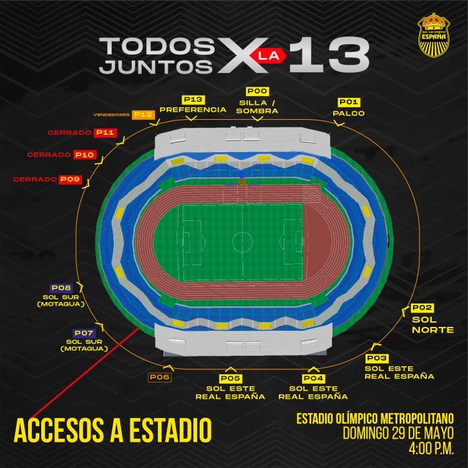 Real España presento mediante sus redes el mapa de accesos al estadio Olímpico Metropolitano para su ingreso en la Gran Final de Vuelta.