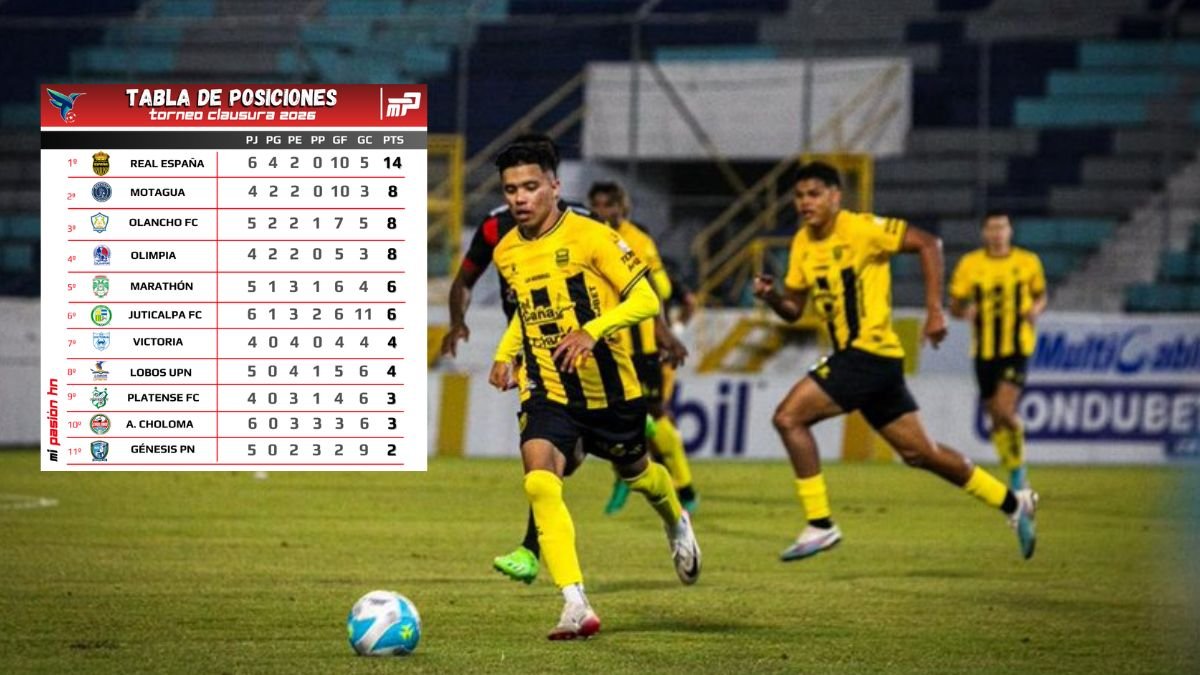 Real España venció a Choloma y es líder solitario del torneo Clausura de la Liga Nacional de Honduras. Acá mostramos la tabla de posiciones iniciando la jornada 6.