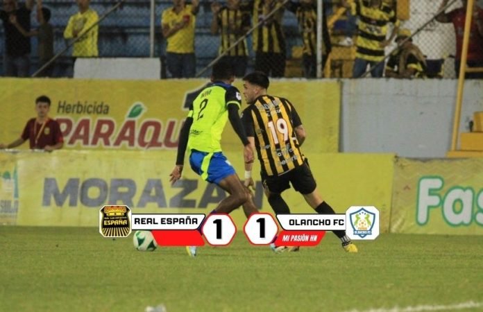 Real España y Olancho FC empataron 1-1 en un partidazo jugado en el estadio Morazán de San Pedro Sula.