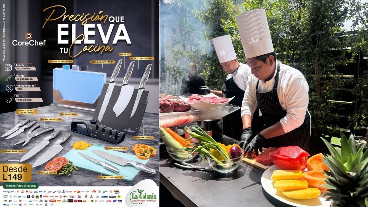 Supermercados La Colonia lanza su nueva promoción “Precisión que eleva tu cocina”, una exclusiva colección de cuchillos Core Chef, diseñada para elevar la experiencia culinaria con utensilios de alta precisión, funcionalidad y diseño moderno, pensada para facilitar cada preparación en el hogar.