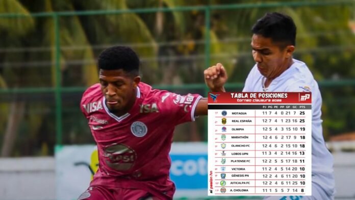 Más abajo están Lobos de UPN, Platense, Victoria, Génesis PN, Juticalpa FC y Choloma.