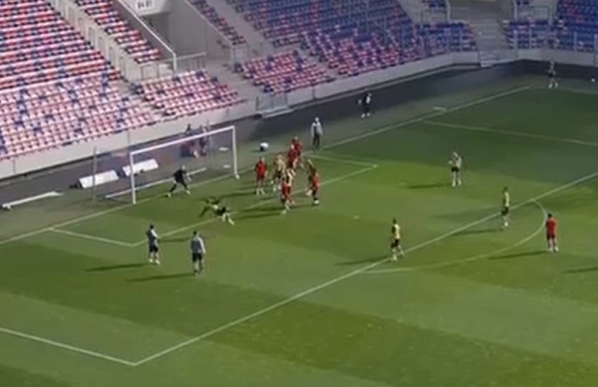 Deiby marcó un golazo de tijereta en el ensayo de tiros de esquina.