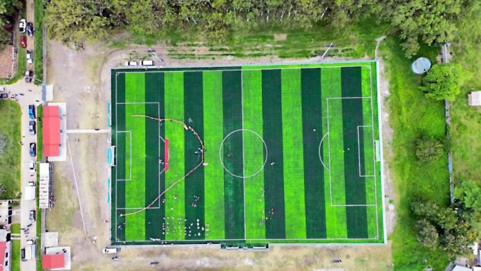 La cancha inaugurada en este municipio antes estaba abandonada. Ahora dispone de grama sintética, iluminación, drenaje, cerco de malla